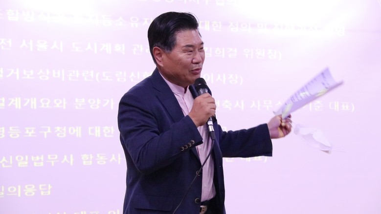 한편, 철거 보상비 관련해 도림신협 박남오 이사장의 설명과 함께 신일법무사 합동사무소 대표 김종면 법무사는 '영등포구청에 대한 수사관련 상황보고'를 통해 현재 수사 중에 있으며 결과가 나오는 대로 중간보고 시간을 갖도록 하겠다고 밝혔다.