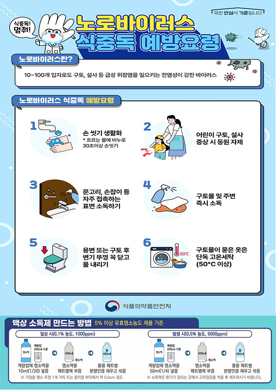 감염 경로는 바이러스에 오염된 물이나 채소·과일·해산물 섭취뿐만 아니라 감염자와의 직·간접 접촉을 통해서도 전파될 수 있어 각별한 주의가 필요하다.