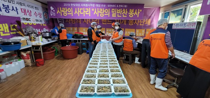 [대전=세계타임즈 이채봉 기자] 대전광역시 SNS 일만명 봉사단체 사랑의 사다리 밴드(리더 이정제)는 지난8일 오전9시~오후1시에 대덕구 중리동에 위치한 사랑의 사다리 밴드 사무실에서 밑반찬을 만들어서 중구 소외계층 55가정에 전달을 하였다.