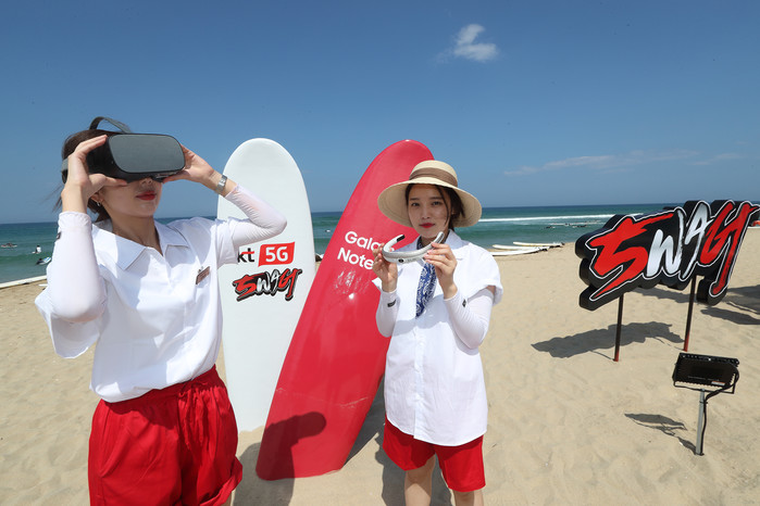 KT가 9일부터 강원도 양양군 서피비치에서진행되는 ‘KT 5G 비치 페스티벌SWAG’을 통해 첫 선을 보인5G 액티비티는 서핑과 제트서핑,짚라인이다. 제트서핑과 짚라인을 이용하는 고객은‘리얼360 넥밴드’와 ‘싱크뷰(Sync view)’를 통해 360도로 바다 및 해변의 전경과 본인의 1인칭 시점을 영상으로 볼 수 있다.또 서핑을 하는 서퍼들은멀티 카메라인 ‘포지션뷰(Position view)’를 통해 자신의 서핑 장면을 여러 각도에서 촬영해 볼 수 있다.