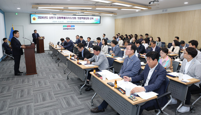 [강원도 세계타임즈=김민석 기자] 강원특별자치도의회(의장 : 권혁열)는 5월 22일(수) 강원특별자치도의회 세미나실에서 도의원을 대상으로 ‘2024년 상반기 의정역량강화 교육’을 실시한다.