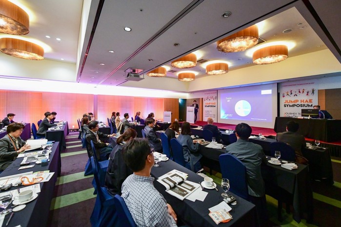 JUMP HAE 심포지엄에는 알레르기내과, 소아청소년과, 피부과 등 국내외 전문의 등 40여 명이 참석했으며, 호주 왕립 아델레이드병원(Royal Adelaide Hospital) 윌리엄 스미스(William Smith) 교수와 일본 준텐도 대학병원(Juntendo University Hospital) 다이스케 혼다(Daisuke Honda) 교수가 방한해 각국의 유전성 혈관부종의 진단 및 치료에 대한 최신 지견을 공유했다.