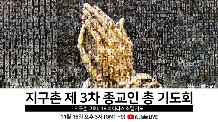지난 15일 오후 신천지예수교 증거장막성전(신천지예수교회)이 유튜브 생중계로 전 세계 코로나19 종식을 기원하는 ‘지구촌 제3차 종교인 총 기도회’를 진행했다.