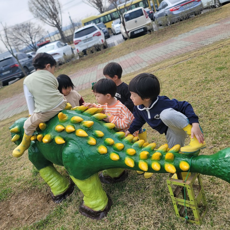 따스한 햇살 아래에서 친구들과 공룡 숲을 거닐며 공룡과 함께 깜찍하게 사진을 찍어 보았고, 실감 나는 공룡 조형물들을 보며 “공룡이 정말 살아있는 것 같아요.”, “공룡 소리가 진짜로 나는 것 같아요.”하고 감탄하기도 하였다. 더 나아가, 공룡에 대해 관심이 생긴 유아들은 책을 살펴보며 공룡에 대해 알아보는 시간을 가졌고, 공룡의 울음소리를 들으며 공룡의 모습 및 움직임을 몸으로 표현해 보기도 하였다.