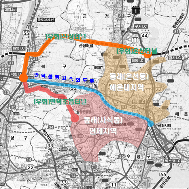 | ▲ 만덕센텀 고속화도로 우회도로 현황 |