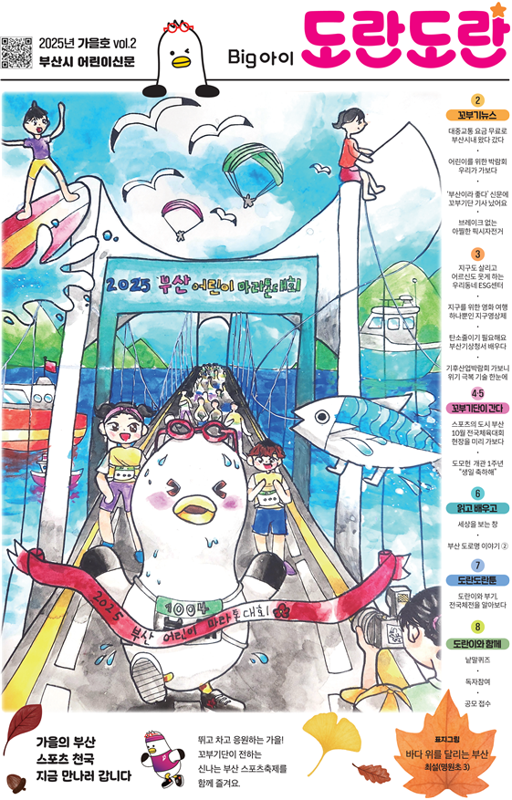 원영일 시 대변인은 “이번 제2호는 전국(장애인)체전, 기후·환경, 문화 현장 등 부산의 주요 이슈를 어린이의 시선으로 생생하게 담았다”라며, “독자 만족도 조사와 표지 공모전 등 다양한 참여 기회를 통해 「빅(Big)아이 도란도란」을 어린이와 시민이 함께 만들어가는 신문으로 발전시켜 나가겠다”라고 전했다.