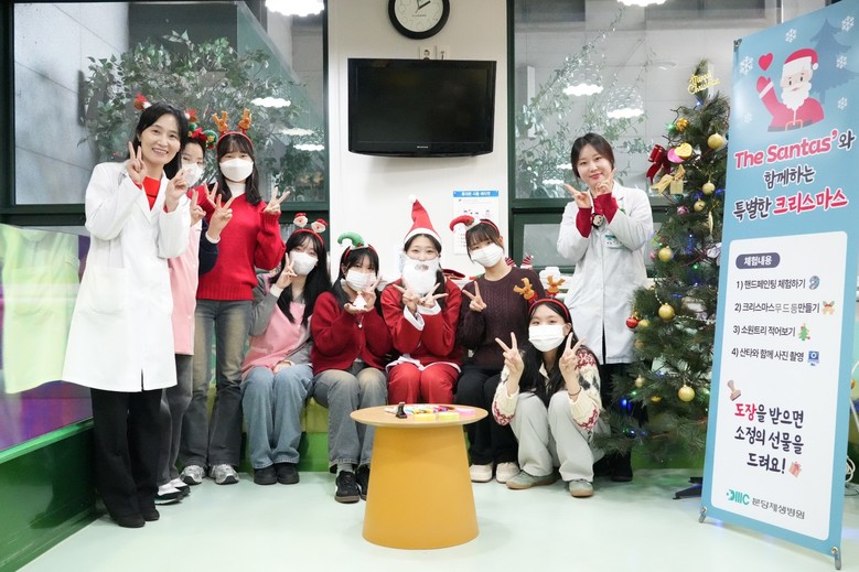 특히, 이번 어린이 병동 환아를 위한 행사에는 지역사회 봉사단체인 단국대학교 간호학과 동아리 The Santas가 함께하여 핸드페인팅, 크리스마스 장식 만들기, 캐럴 부르기 등 다양한 프로그램을 진행했고, 3개의 체험을 마친 아이들이 산타와 기념사진 촬영 후 선물을 받으면서, 병동 어린이 환자들의 얼굴에 웃음꽃이 피어나는 기쁜 시간이었다.