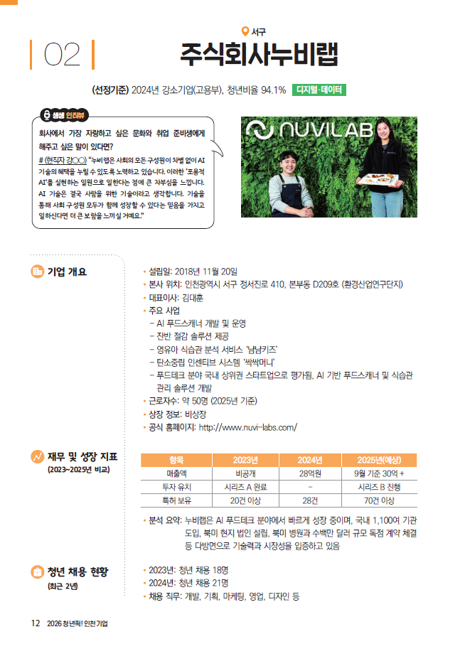 - 바이오·로봇·AI까지… 청년 친화 우수기업 32곳 정보 제공 - [인천 세계타임즈=심하린 기자] 인천광역시(시장 유정복)는 2월 2일 인천지역 청년들이 일하고 싶은 기업 정보를 한눈에 볼 수 있는 『2026 청년픽(PICK)! 인천기업』 가이드북을 발간했다고 밝혔다.