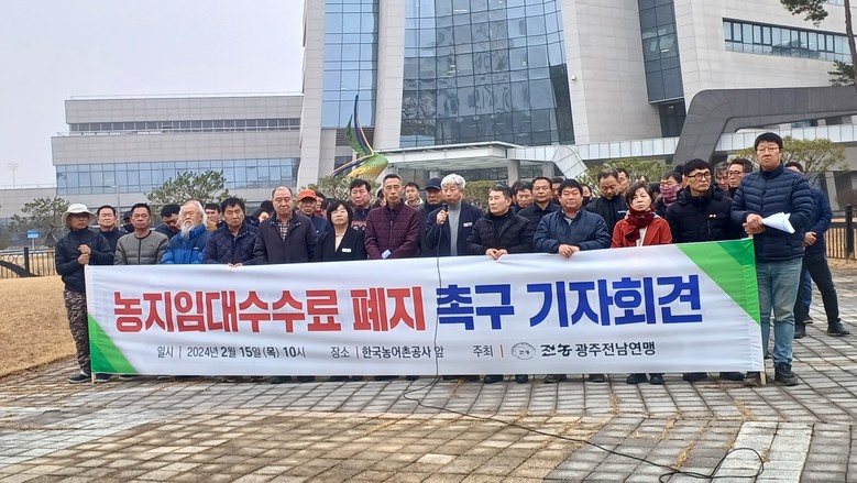 [전남 세계타임즈=우덕현 기자] 전남도의회 박형대 의원(진보당,장흥1)은 지난 2월 15일 한국농어촌공사 앞에서 전국농민회총연맹 광주전남연맹과 함께 농지임대수수료 폐지를 촉구하는 기자회견에 참석했다.