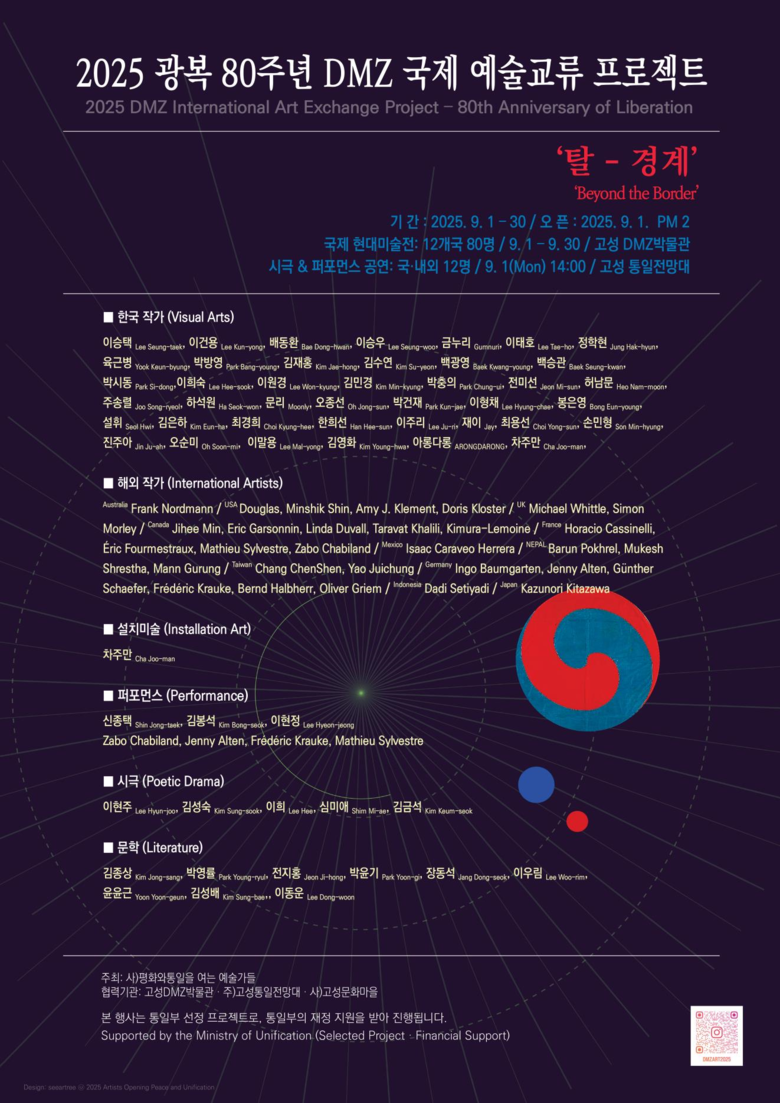전시 주제는 ‘탈(脫)–경계’로, 한반도 분단의 역사적 의미를 되새기고 평화·통일, 전쟁 종식, 이념 갈등을 넘어서는 국제적 연대와 예술적 대화를 모색한다.