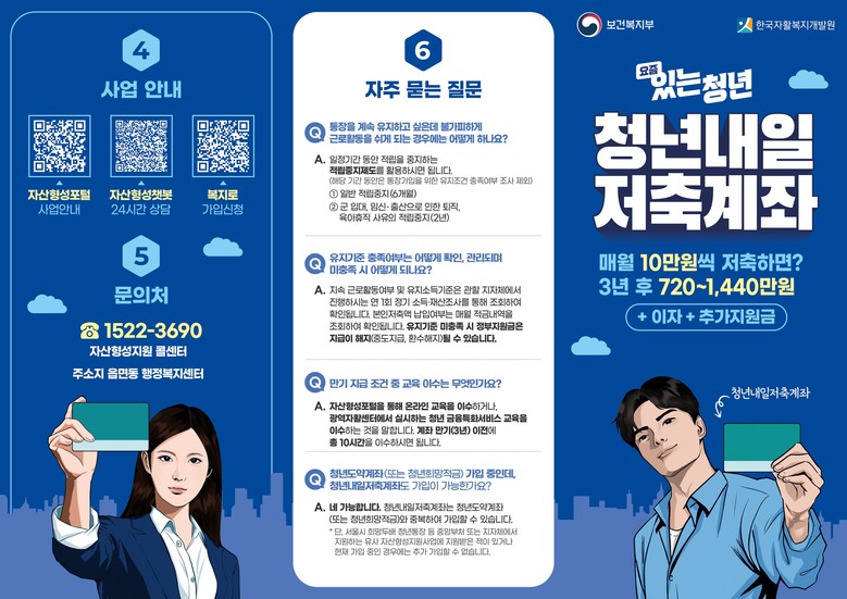 한편, '청년내일저축계좌'를 통해 3년간 쌓인 돈은 청년들의 창업, 교육, 주거 등 자립을 위한 자금으로 사용된다.