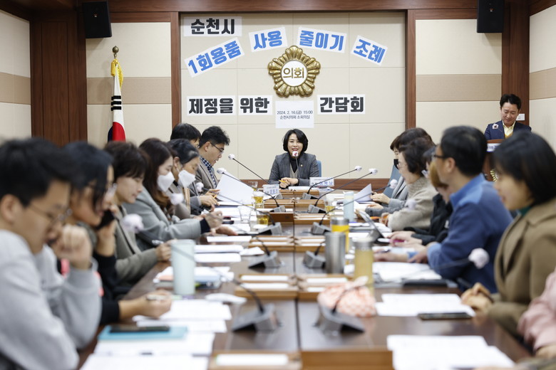[순천시 세계타임즈=우덕현 기자] 순천시의회 도시건설위원회(위원장 최병배)는 16일 「순천시 1회용품 사용 줄이기에 관한 조례」 제정을 위해 환경 운동의 일선에 있는 단체 및 시민들과 관련 부서(청소자원과)의 의견을 청취하는 간담회를 개최했다.