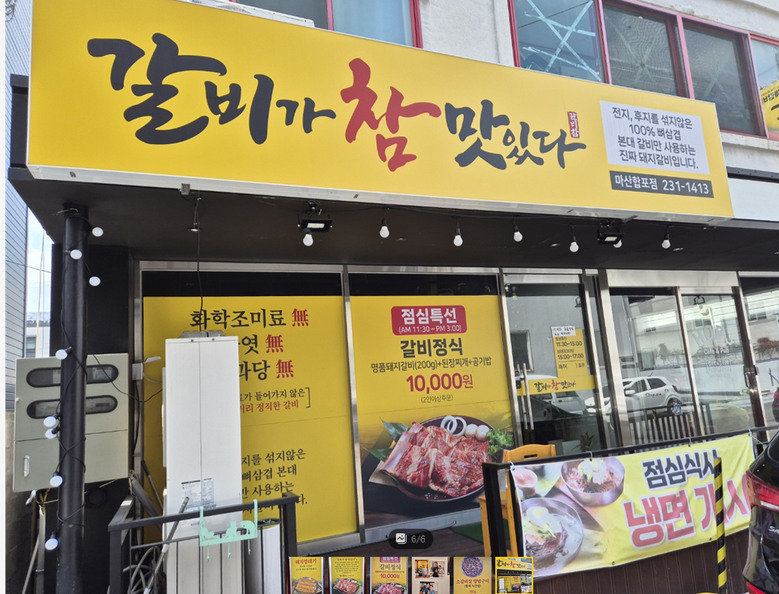 상호가 '갈비가 참 맛있다. 이 집은 '창원시 합포구 월영동 11길-16 1층에 위치하고 있다. 매장 안도 넓고 깔끔하다. 갈비집 같지 않은 깔끔함을 느끼게 한다. 테이블이 생각보다 많이 있는데 한 줄로 길게 테이블이 배치되어 있어서 가족 단위도 좋고 단체석으로도 이용하면 좋을 공간도 가지고 있다