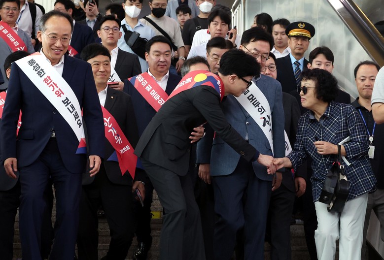 추석 귀성 인사하는 한동훈 대표와 지도부