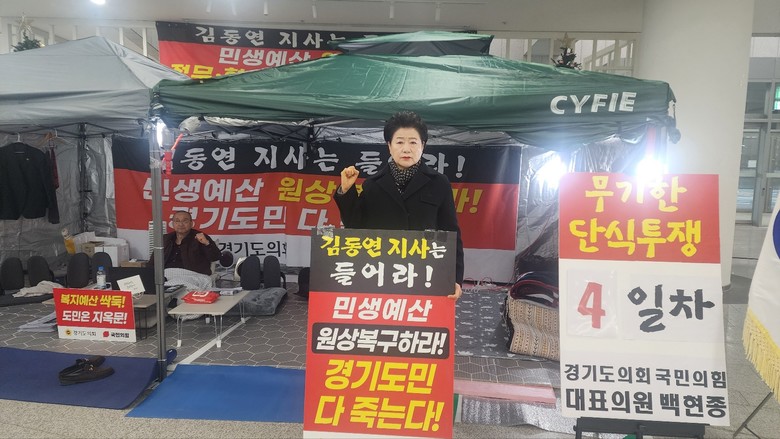 [경기도 세계타임즈=송민수 기자] 경기도의회 경제노동위원회 남경순 의원(국민의힘, 수원1)은 28일 민생예산 원상복구’를 촉구하며 단식 4일 차에 돌입한 백현종 경기도의원(구리1)의 농성장을 직접 방문해 격려와 강력한 지지 의사를 밝혔다.