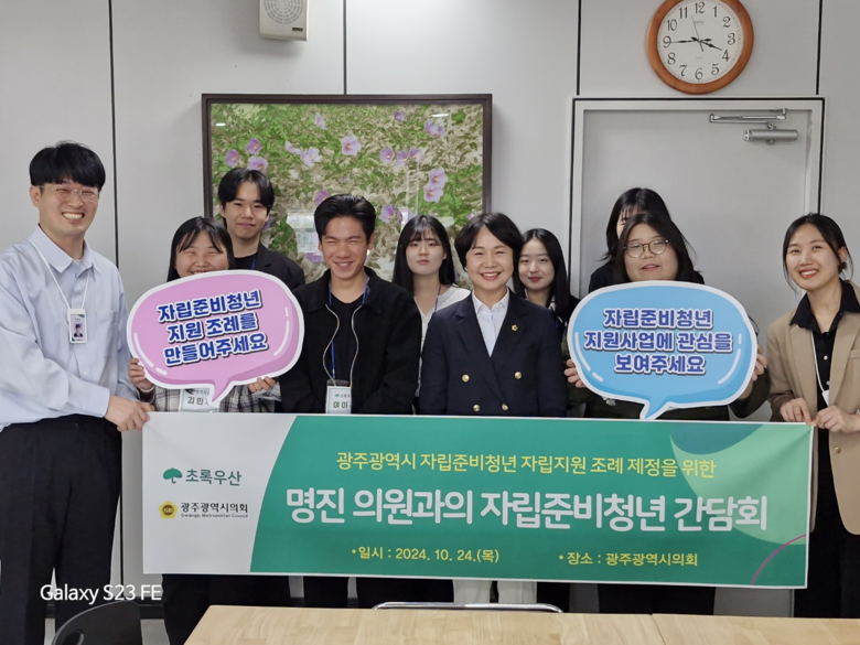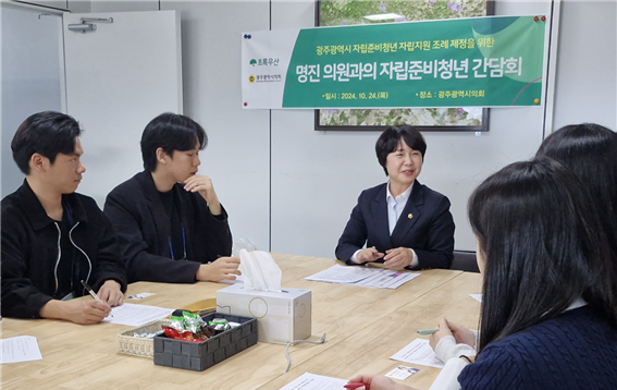 [광주 세계타임즈=손권일 기자] 광주시의회 교육문화위원회 명진 위원장(더불어민주당, 서구2)은 24일 위원장실에서 자립준비 청년 지원 조례안에 대한 의견 청취를 위해 초록우산 광주지역본부(본부장 김은영)와 간담회를 개최했다고 밝혔다.