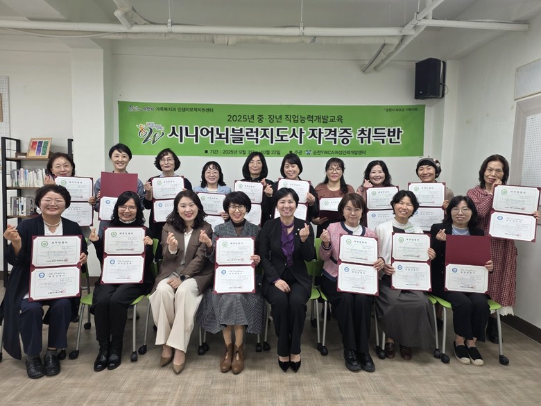 [순천시 세계타임즈=우덕현 기자] 순천시(시장 노관규)는 지난 22일 인생이모작지원센터에서 「시니어뇌블럭지도사 자격증반」 수료식을 열었다고 밝혔다.