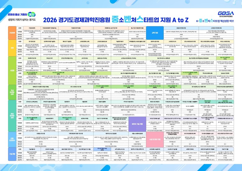 | ▲“2026년 경과원 중소벤처스타트업 지원 A to Z” 기업지원사업 현황표.(사진=경과원) |