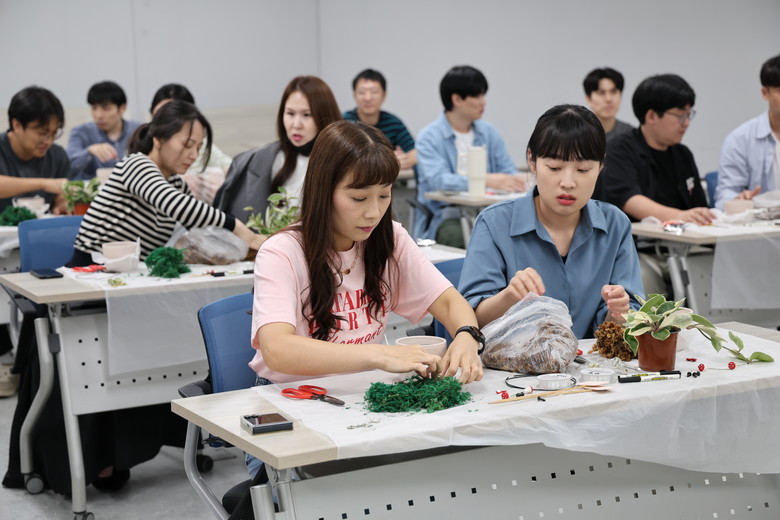 외부 강사 초빙해 식물을 이해하고, 임직원들이 직접 꾸미며 ‘나만의 작은 정원’을 완성하는 과정 속에서 참여자들은 긴장 완화·정서적 안정·몰입에 따른 스트레스 해소 효과와 성취감을 느낄 수 있었다.