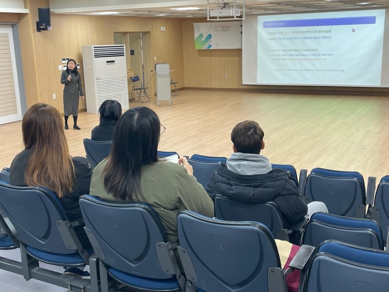 2025년 11월 18일(화), 금신초등학교에서 진행되는 2025 인성교육 학부모 아카데미의 1차 주제는 「사회정서학습의 이해와 적용」으로 경인교육대학교 박알뜨리 교수의 강의로 진행되었다.