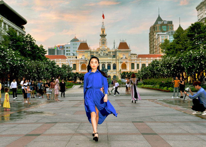 사진설명 : 호치민 인민청사 앞 광장에서 펼쳐진 박정상 디자이너의 게릴라 패션쇼.