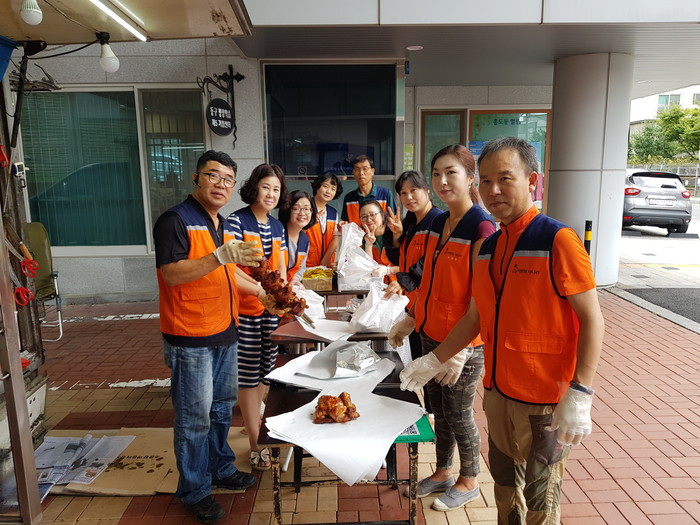 이득범 홍도동장은 ”더운 날씨에도 관내 어르신들을 위하여 통닭을 지원해주신 사랑의 사다리 밴드와 가수 박사랑 회원에게 감사함을 전한다.“고 말했다.