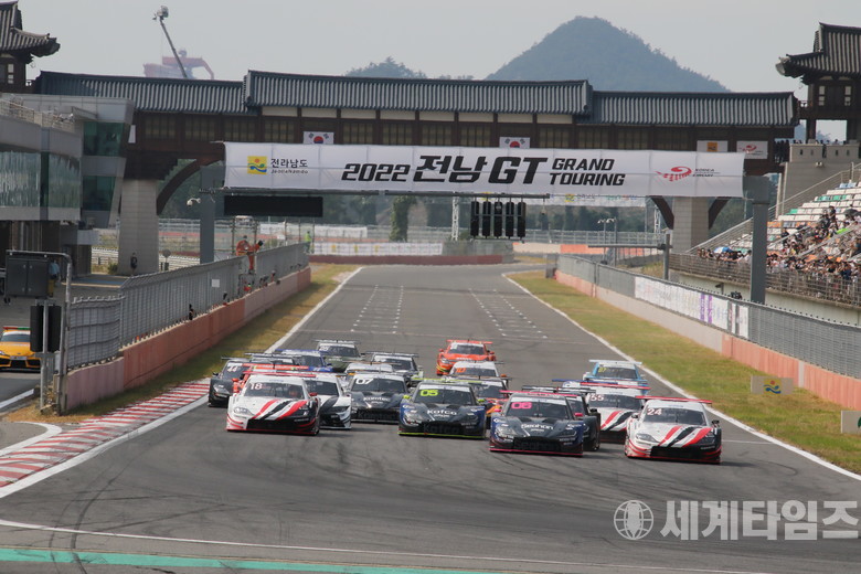 [세계타임즈=방춘재 기자] 10월 1일(토)부터 양일간 전라남도 영암의 코리아인터내셔널서킷(이하 KIC)에서 펼쳐진 2022 전남GT가 성황리에 막을 내렸다. 국내 최대 모터스포츠 축제답게 5개 클래스 총 190여 대의 레이스카가 경기장을 찾은 관람객 1만 1천여 명(양일간 총 10,992명)이 보는 앞에서 치열한 접전을 펼쳤다.