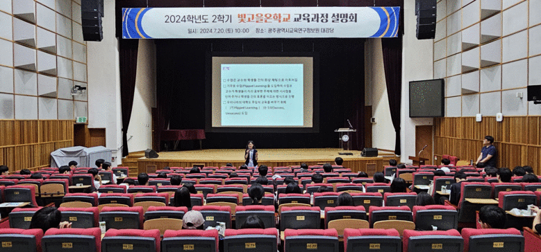 [광주 세계타임즈=손권일 기자] 빛고을온학교는 지난 20일 광주교육연구정보원 대강당에서 25개 고등학교 594명을 대상으로 ‘2024학년도 2학기 교육과정 설명회’를 열었다.