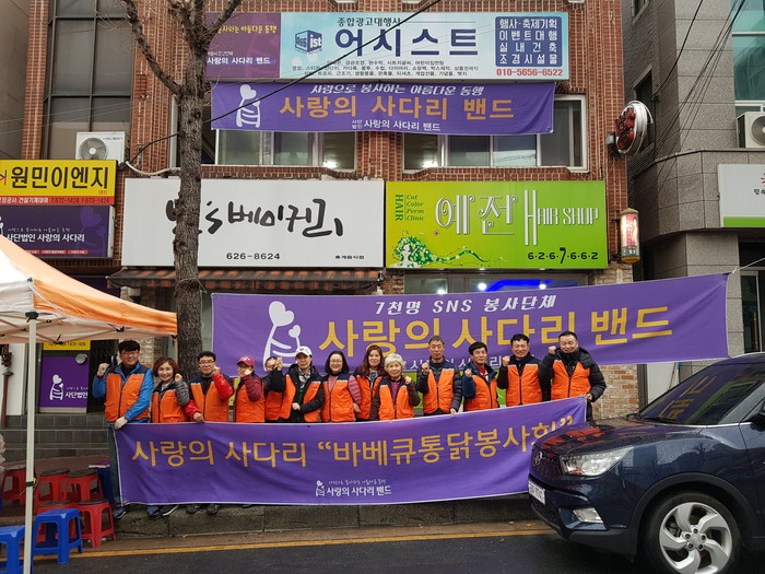 [대전=세계타임즈 이장성 기자] 구정명절을 앞두고 대전시 소외계층 100가정을 위해서 대전시 SNS 봉사단체 사랑의 사다리 밴드(리더 이정제)는 3일 오후1시~오후5시,대덕구 중리동에 위치한 사랑의 사다리 사무실앞에서 바비큐통닭 봉사로 우리 사회의 따뜻한 사랑을 전달 하였다.