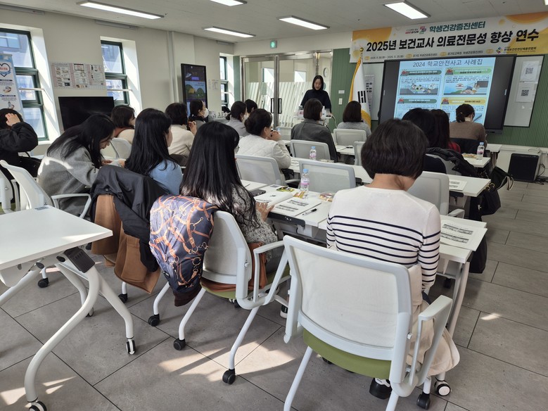 연수 내용은 ▲보건실 운영 및 응급처치 ▲근골격계 손상 대응 ▲뇌·내분비계 및 심장 응급처치 등으로 구성했으며, 학생건강증진센터 교육실에서 대면 실습으로 진행됐다.