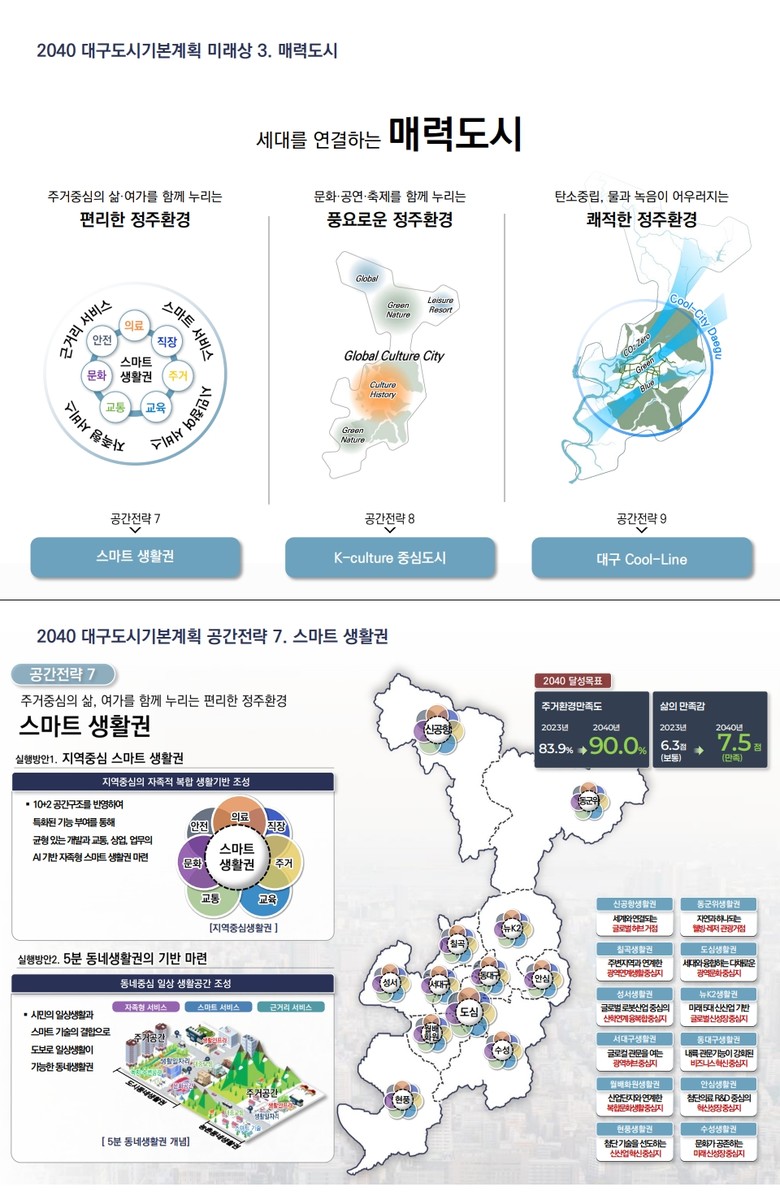 [매력도시 전략 : ①스마트 생활권, ②K-culture 중심도시, ③대구 Cool-Line] 세대를 연결하는 매력도시를 만들어 시민 삶의 질을 향상하기 위한 공간분야 혁신으로,
