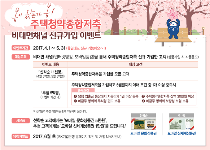 IBK기업은행, 주택청약종합저축 비대면채널 가입 이벤트