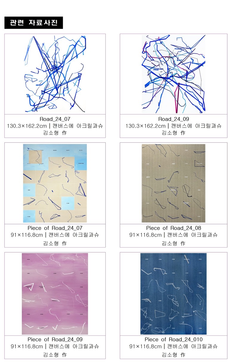 이번 전시는 ‘데이 바이 데이(Day by Day): 길 위에서’를 주제로 김소형 작가가 매일의 ‘동선’을 예술로 승화시킨 44점의 작품을 선보인다.
