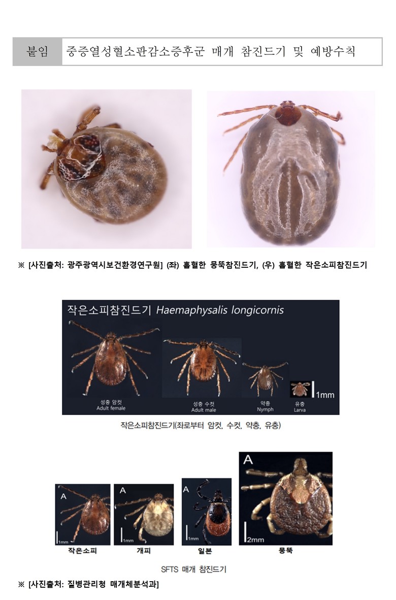 중증열성혈소판감소증후군(SFTS, Severe Fever with Thrombocytopenia Syndrome)은 참진드기 활동이 왕성한 4~11월에 주로 발생한다.