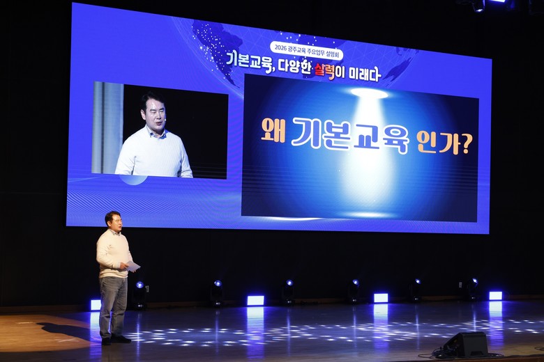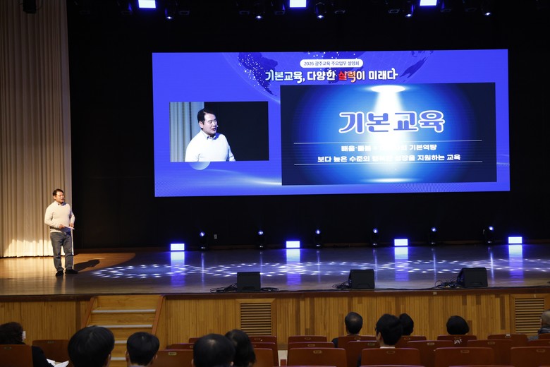 설명회는 2025년 주요 성과 소개, 이정선 교육감의 ‘기본교육, 다양한 실력이 미래다’ 비전 발표, 2026년 광주교육 4대 중점영역 안내 순으로 진행됐다.