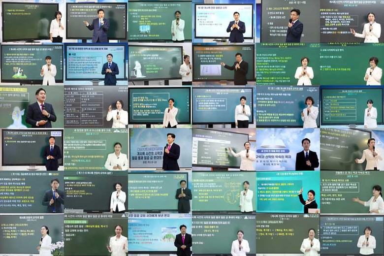 ▲신천지예수교회 일반 성도로 수요예배에 계시록 설교를 진행하는 성도들. (사진 윗줄 왼쪽부터 시계방향으로) 통영교회 장세현 성도, 왕십리교회 정민희 양, 동대문교회 이은지 성도, 경주교회 배원영 성도의 모습.