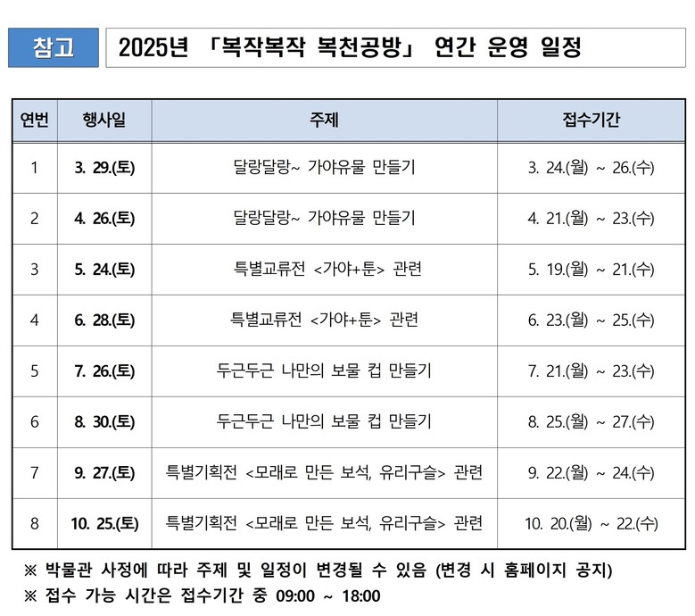 기타 자세한 사항은 복천박물관 누리집(https://museum.busan.go.kr/bokcheon) 공지사항을 참고하거나 전화(☎051-550-0334)로 문의하면 된다.