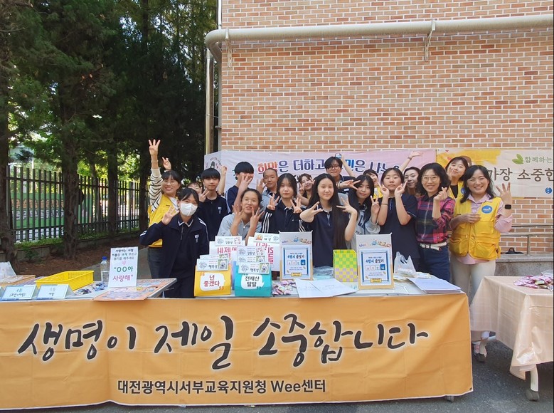 정신건강의 날(10월 10일)을 맞이하여 마련된 이번 캠페인은 대전서부교육지원청 위(Wee)센터의 협조를 받아 위(Wee)클래스 주관으로 생명존중동아리 학생 11명과 함께 진행했다.