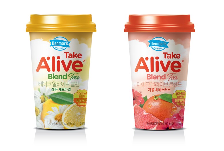 ‘덴마크 테이크 얼라이브’는 동원F&B가 2015년 출시한 국내 최초의 컵 타입 유산균 음료다. ‘덴마크 테이크 얼라이브’는 탄산을 넣어 청량감을 높인 ‘덴마크 테이크 얼라이브 제로 톡’에 이어 허브티를 접목시킨 ‘덴마크 테이크 얼라이브 블렌드’까지 진화를 거듭하고 있다. 동원F&B는 지속적인 신제품 출시와 마케팅 활동을 통해 ‘덴마크 테이크 얼라이브’를 1,000억 원 규모의 히트 브랜드로 키워낸다는 목표다.