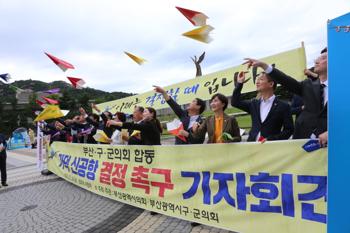 이날 합동 기자회견은 국무총리실의 김해신공항 검증 결과 발표가 임박한 가운데 객관적이고 공정한 검증결과를 조속히 발표할 것을 촉구하고 가덕신공항 건설의 당위성을 전 국민에게 널리 알리기 위해 마련됐다. 신상해 부산시의회 의장과 김진 구·군의회 대표를 비롯해 시의회 의장단, 구·군의회 의장 등 30여 명이 참석해 건의문을 낭독하고 종이비행기 날리기 퍼포먼스를 펼치며 가덕신공항에 대한 염원을 알렸다.