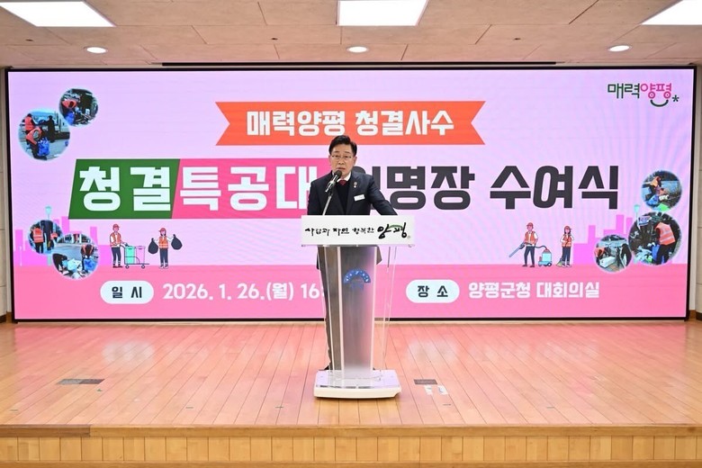 전진선 양평군수는 “오늘 임명장을 받으신 한 분 한 분은 단순한 청결 활동을 넘어 양평의 이미지를 가꾸는 주인공”이라며 “환경수도 양평은 여러분이 만들어 가고 있다. 자부심과 사명감을 가지고 함께 깨끗한 매력양평을 만들어 가겠다”고 말했다.