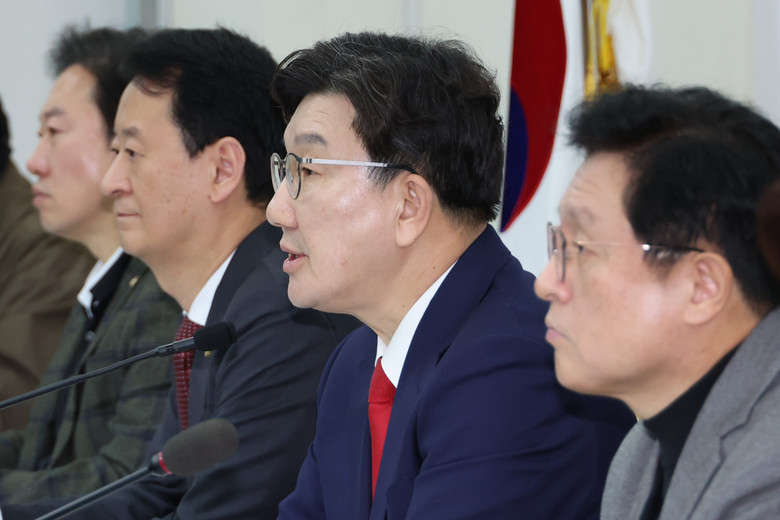 국민의힘 권성동 원내대표가 16일 서울 여의도 국회에서 윤석열 대통령 탄핵 심판과 관련한 당 입장 등 현안 관련 기자간담회를 하고 있다. 2025.3.16