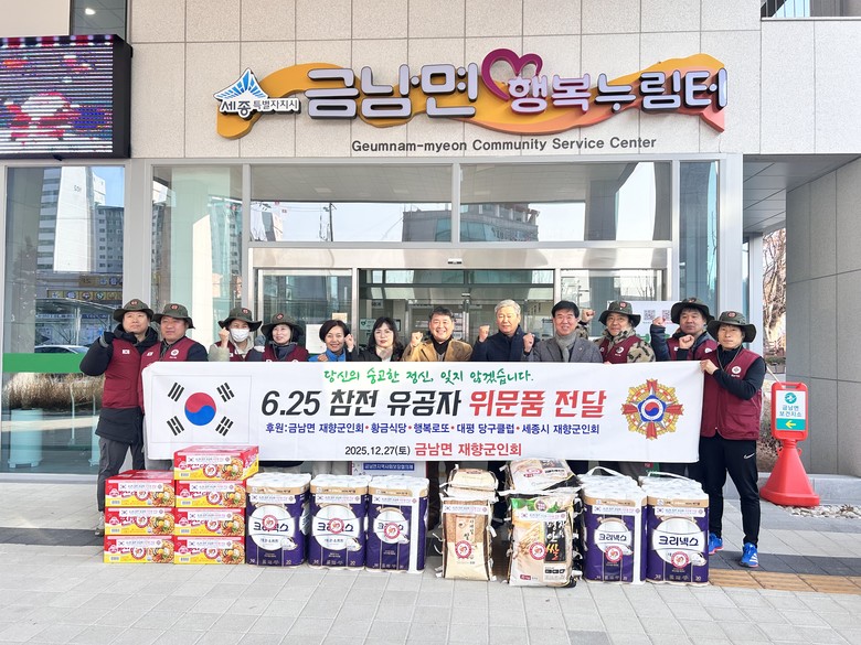 최경식 금남면재향군인회 회장은 “이번 기탁이 6‧25 참전유공자들에게 조금이나마 보탬이 되기를 바란다”며 “연말을 맞아 지역사회와 함께 따뜻한 나눔을 실천할 수 있어 기쁘다”고 전했다.