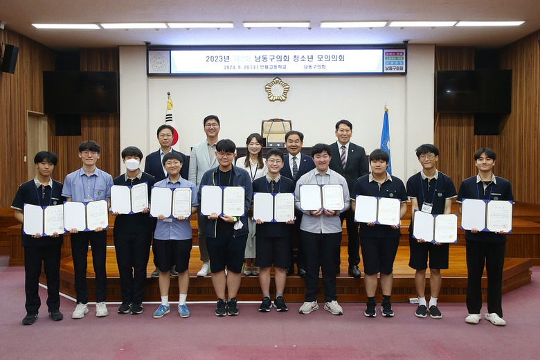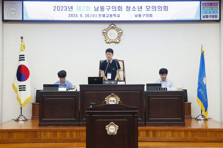 이날 모의의회는 간석동 소재 인제고등학교 진로 탐구 동아리 1·2학년 학생 10명이 참여하였고, 남동구의회 중회의실에서 구의회 소개와 의회의 기능과 역할에 대한 교육을 받은 후 본회의장으로 이동하여 의장 및 구청장, 의원 등 각자 역할을 맡아 구정 질의, 본회의에 상정된 조례안에 대한 제안설명 등 의결의 과정을 직접 체험 하였다.