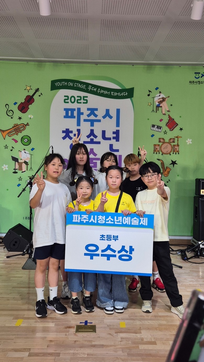 [파주시 세계타임즈=송민수 기자] 파양초등학교(교장 강정수)의 학생 밴드‘어니언즈’가 지난 2025년 5월 30일(금) 파주시 청소년수련관에서 열린 ‘2025년 파주시청소년예술제’ 대중문화(밴드) 종목에서 초등부 ‘우수상’을 수상하는 쾌거를 이루었습니다.