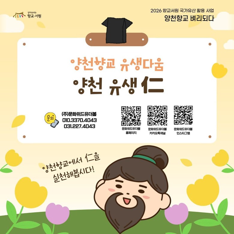 이번 사업은 ‘양천향교 벼리되다’를 주제로 향교의 정체성과 가치를 담은 교육 프로그램을 통해, 핵심이자 중심이란 ‘벼리’의 본뜻처럼 교육의 본래 기능을 되살리고 현대적 의미를 부여하기 위해 마련했다.