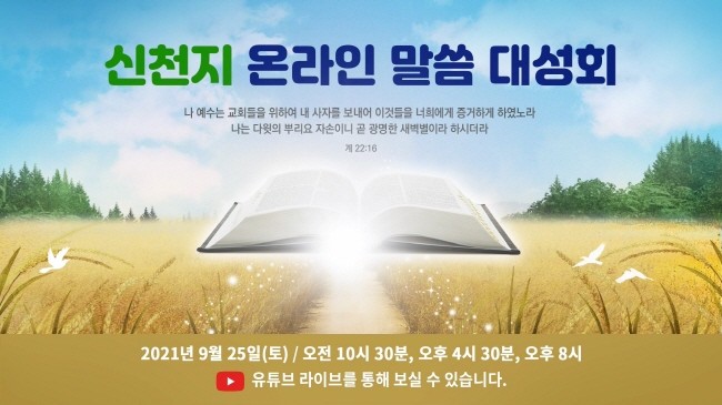 [세계타임즈 백진욱 기자] 신천지예수교 증거장막성전(이하 신천지예수교회)의 이만희 총회장이 지난달에 이어 25일 2차 온라인 말씀대성회를 열고 주 재림 때를 예언한 마태복음 24장의 숨겨진 뜻을 선경을 근거로 설명해 주목을 받고 있다.