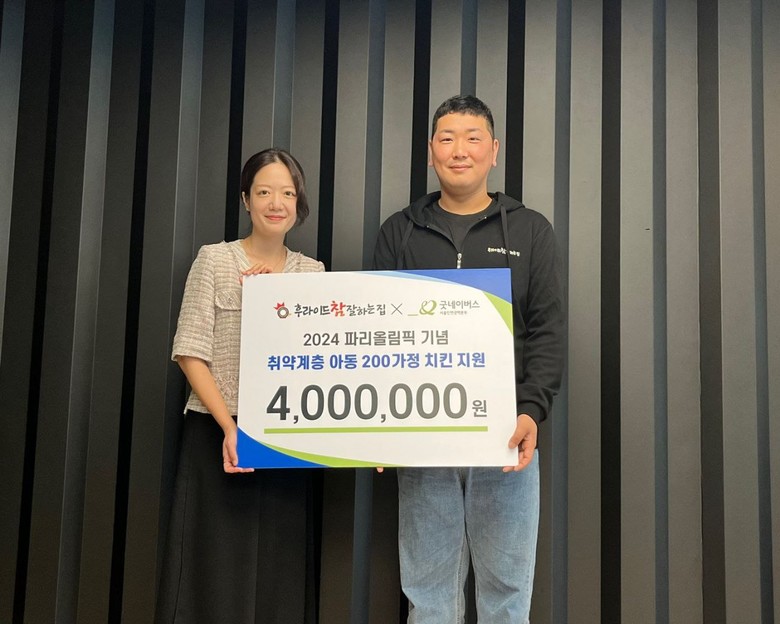 ‘후라이드 참 잘하는 집’ 이병현 대표는 “국제대회가 열리면 치킨이 늘 함께 하는데 취약계층 아동들도 치킨과 함께 힘을 내서 파리올림픽 대한민국 대표팀을 응원했으면 하는 마음에 지원을 결심하게 되었다”고 밝혔다.