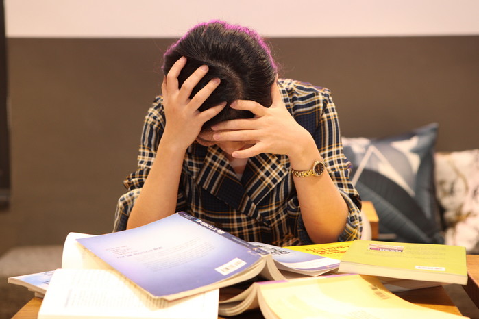 | ▲한 직장인 여성이 스트레스로 머리를 감싸 쥐고 있다. |