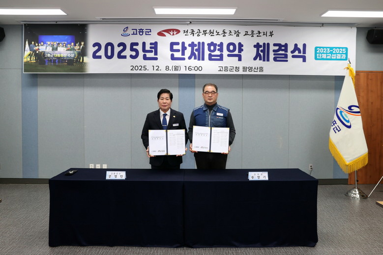 송정기 지부장은 “이번 단체협약은 조합원들의 목소리를 바탕으로 노사가 충분한 소통 끝에 도출한 결과로, 현장의 근무여건 개선과 직원 복지 향상에 실질적인 도움이 될 것으로 기대한다”며 “앞으로도 고흥군과의 협력을 통해 안정적인 노사관계와 건강한 공직문화를 만들어 나가겠다”고 전했다.